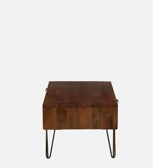 Crafted from high-quality solid wood, the table features a smooth wooden top, a convenient storage drawer for small essentials, and an open shelf for books, magazines, or décor. The clean-lined structure is supported by sturdy metal legs, adding a light, modern touch while ensuring stability.