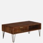 Designed to complement modern interiors, this solid wood coffee table combines minimalist design with everyday functionality.