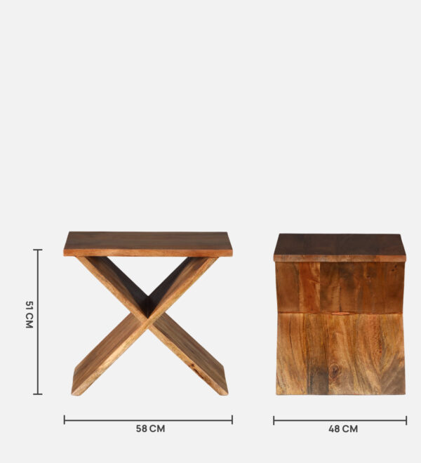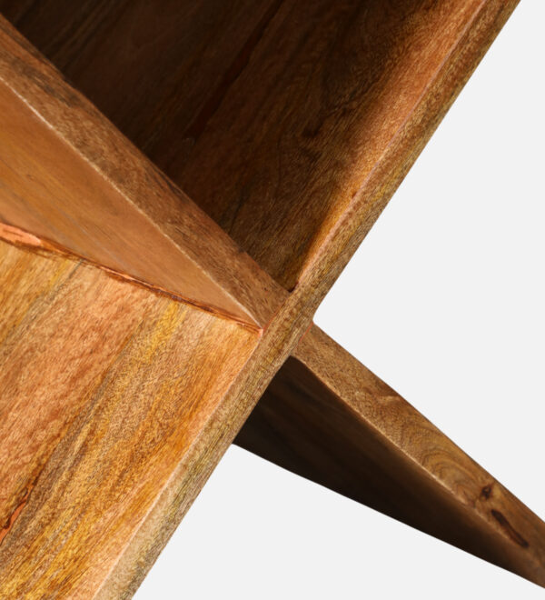 Crafted from high-quality solid wood, the table features a cross (X-shaped) base that provides excellent stability while creating a bold visual statement. The smooth wooden top offers a practical surface for lamps, books, décor, or daily essentials.